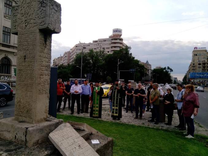 La orele 19.00 a avut loc frumoasă slujbă de pomenire la Crucile şi Troiţa din mijlocul Pieții Universității susţinută de un fost student la Teologie în timpul Mineriadei, Părintele Tudorel Peiu, alături de participanţi şi organizatori ai Expoziţiei şi Fenomenulului Piaţa Universităţii 1990.