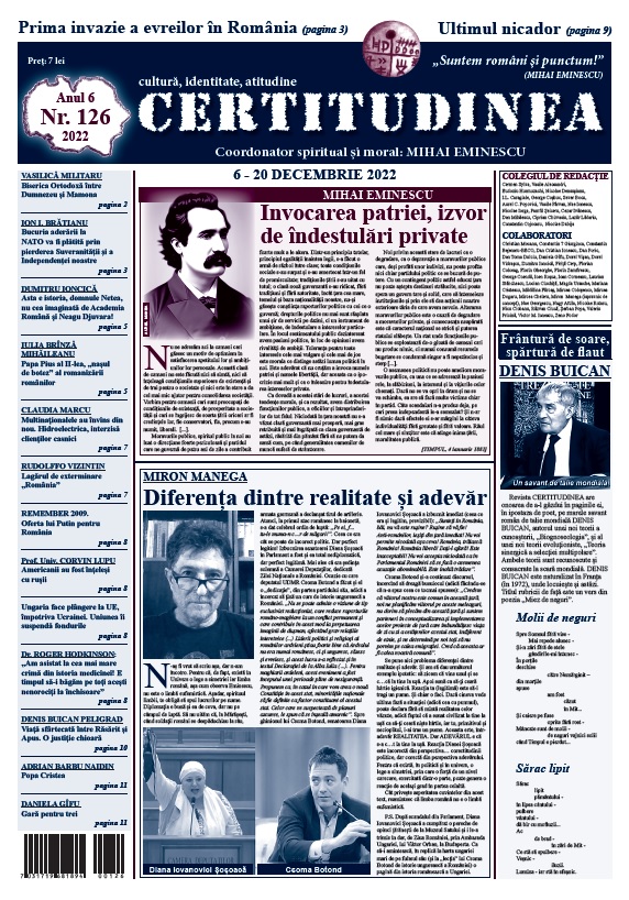 A apărut CERTITUDINEA nr. 126 – Biserica Ortodoxă între Dumnezeu și Mamona