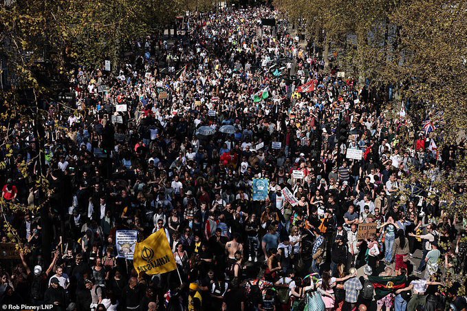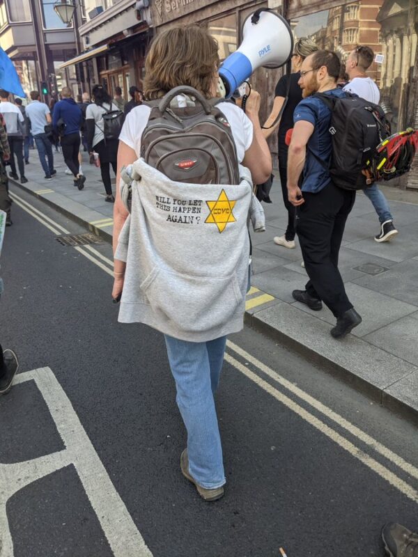 În acest weekend în Anglia au avut loc proteste masive la care au participat în mare parte conspiraționiști care neagă beneficiile vaccinului. Aceștia au comis o blasfemie insuportabilă când au comparat planul guvernului britanic de a vaccina forțat populația cu holocaustul evreilor.