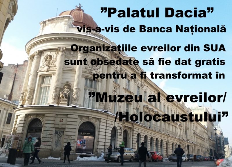 Ca să dea o aparență de legalitate pentru transformarea Palatului Dacia în muzeu evreiesc, ”Institutul Vioricăi pentru Studierea Holocaustului” a inventat o justificare: este amplasat într-o ”zonă caracterizată prin activități bancare, la care au participat și evrei”. Nici nu se putea mai bine ARGUMENTAT – a concluzionat Firea!