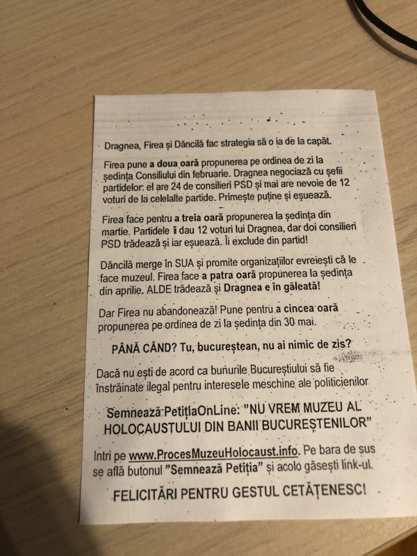 2. Atenționăm că a existat o comisie care a studiat holocaustul în România, singura oficială, și care în concluziile sale nu a menționat că Primăria Municipiului București are vreo obligație