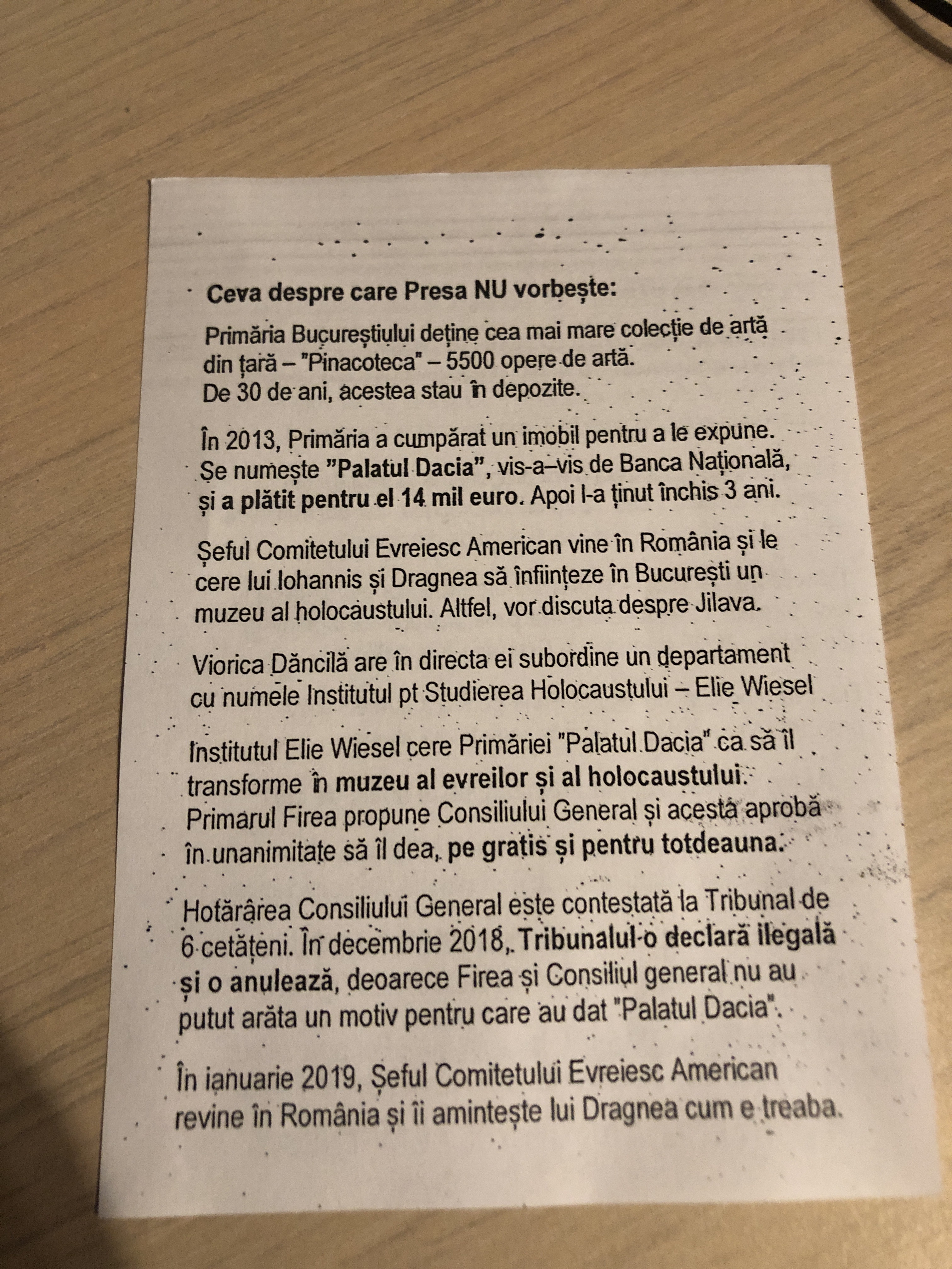3. Nu dorim ca un imobil aparținând patrimoniului bucureștenilor, fie Palatul Dacia fie un altul, să fie transformat în muzeu al evreilor/holocaustului