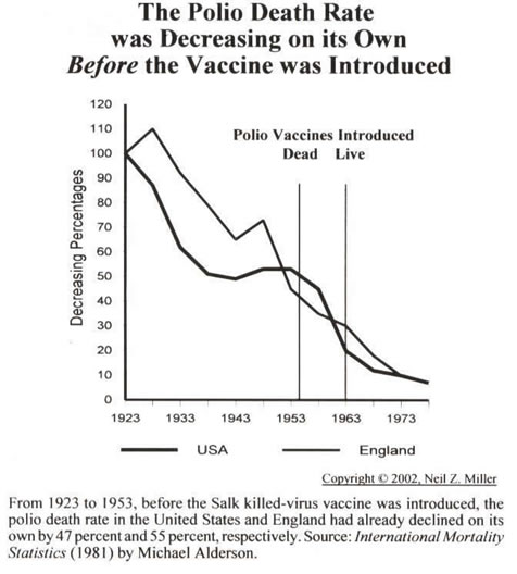 Paralizia care a fost pusă pe seama poliovirusului în anii 1940 și 50 s-a datorat efectiv răspândirii pe scară largă a DDT, un pesticid extrem de toxic (acum interzis). Dar guvernul SUA și departamentele de sănătate, împreună cu companiile chimice, au încurajat pulverizarea DDT asupra publicului american. Campaniile de pulverizare DDT în masă au avut loc pe plaje, aerian peste piscine și parcuri – în special în lunile de vară (cunoscut și ca sezonul agricol). Întâmplător, majoritatea cazurilor de paralizie de „poliomielită” s-au întâmplat în lunile de vară și la copii. Părinții au fost chiar încurajați să-și pulverizeze copiii direct cu substanța chimică extrem de toxică, precum și să-l pună în băi și în alte locuri în care copiii au avut contact direct cu DDT.