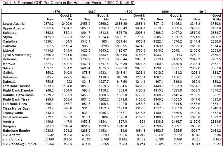 Realitatea cifrelor este cu totul alta: Transilvania și Banatul erau o periferie săracă a imperiului austriac și apoi, între 1867-1918, o periferie și mai săracă a regatului ungar. Pentru cei care împraștie și azi cu obrăznicie mitul imperiului civilizator avem, mai jos, un tabel cu nivelurile PIB/locuitor din toate provinciile blestematului imperiu: