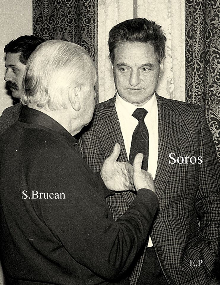 În primul număr al revistei 22, fondată de fundația Soros, pe prima pagină Silviu Brucan dădea sfaturi despre „Socialismul mondial la răscruce”.
