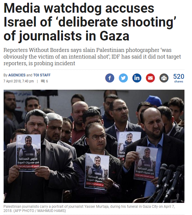 După ce au împușcat 60 de protestatari neinarmati, Israel-ul a împușcat și 6 jurnaliști, ca să nu povestească ce s-a întâmplat.