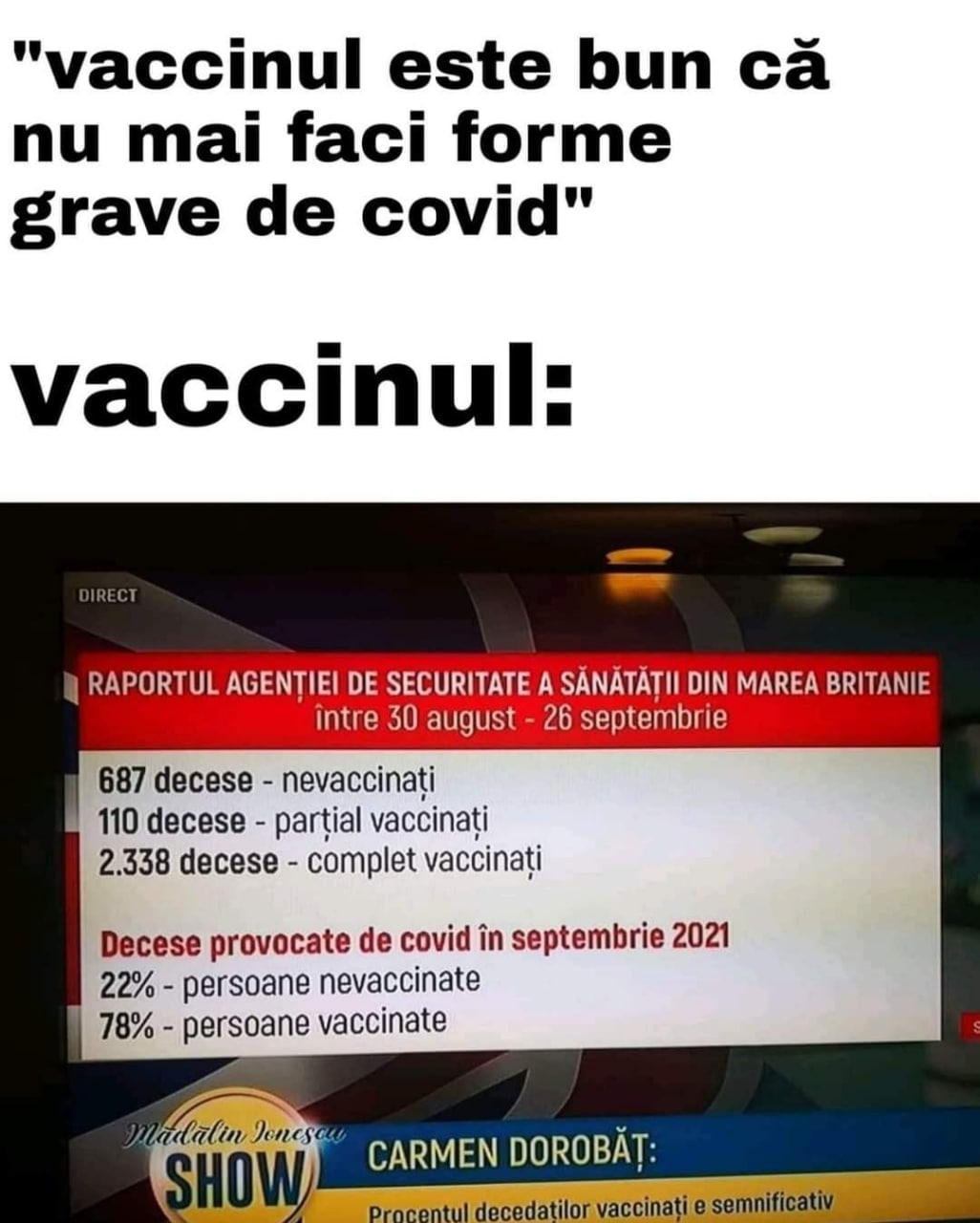 3. N-ați înțeles, vaccinații au murit din cauza ălora care nu s-au vaccinat. /sarcasm