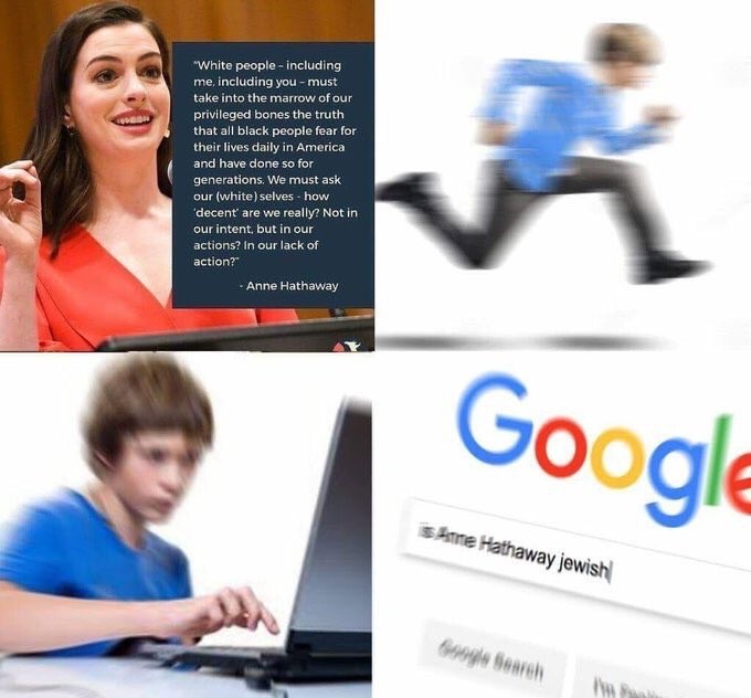 Anne Hathaway: „Albii, inclusiv eu, inclusiv tu – trebuie să înțelegem până în măduva oaselor noastre privilegiate adevărul că negrilor le e frică pentru viața lor în America în fiecare zi, și au simțit asta de generații.