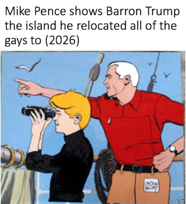 Mike Pence îi arată lui Barron Trump insula pe care a surghiunit toți poponarii.
