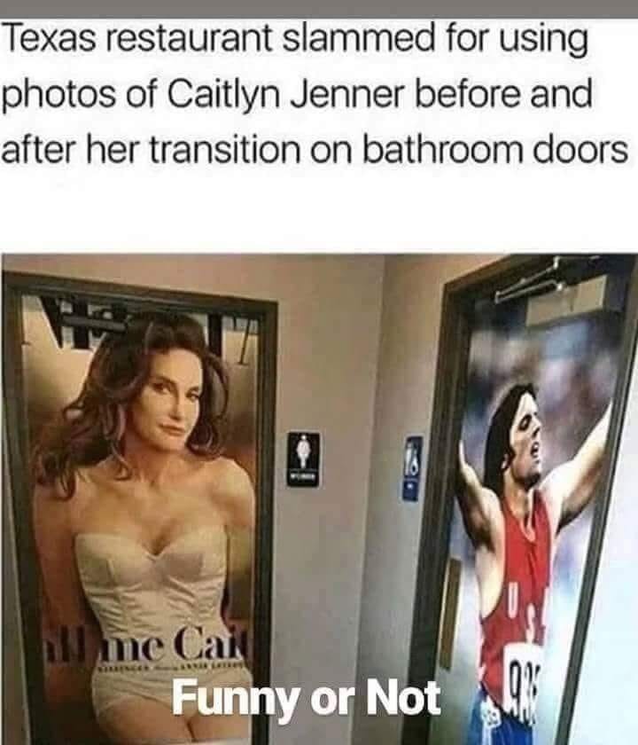 Un restaurant din Texas a fost criticat că a folosit pe ușa de la veceu poze cu Caitlyn Jenner înainte și după schimbarea de sex.