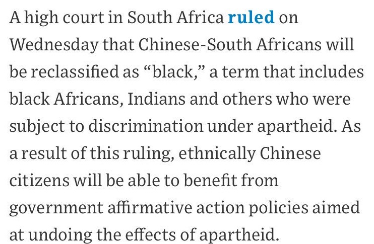 Nu e ca și cum Africa de Sud ar considera chinezii ca fiind negrii și i-ar lasă să ia fermele…