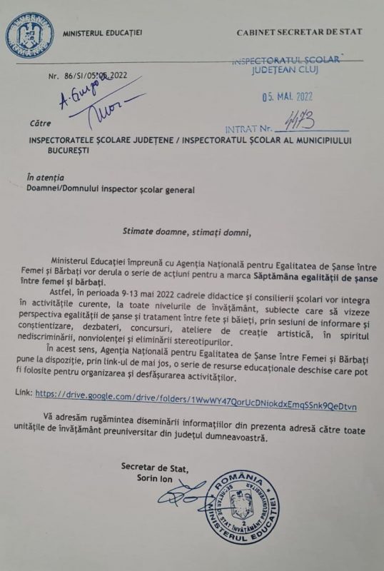La adresa de mai sus se găsește scris în mod incorect, de vreo 12 ori, “gender expression”. Nu e vorba de nici un “gender” ci doar de “expression” iar cine a băgat cuvântul “gender” în mod evident vrea să facă propagandă, însă asta oricum se face la școală cât cuprinde (istorie, economie, psihologie, filozofie, literatură, religie).