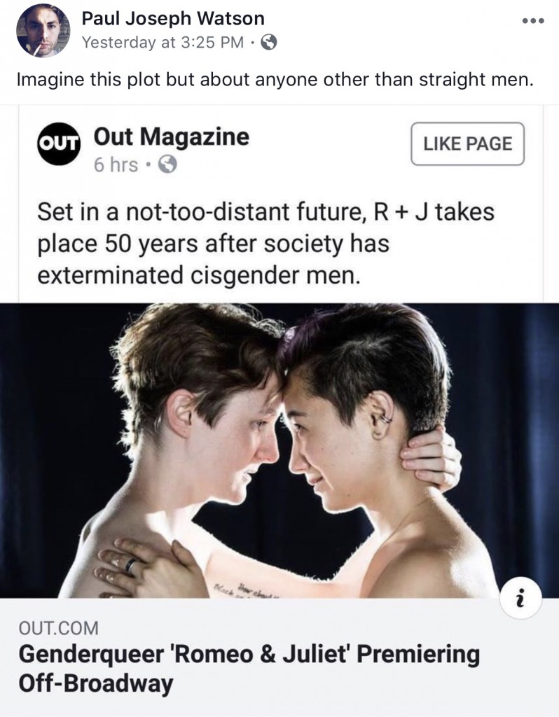 Romeo și Julieta, re-adaptare futuristă, în locul bărbatului alb avem o lesbiană iar bărbații heterosexuali au fost exterminați.