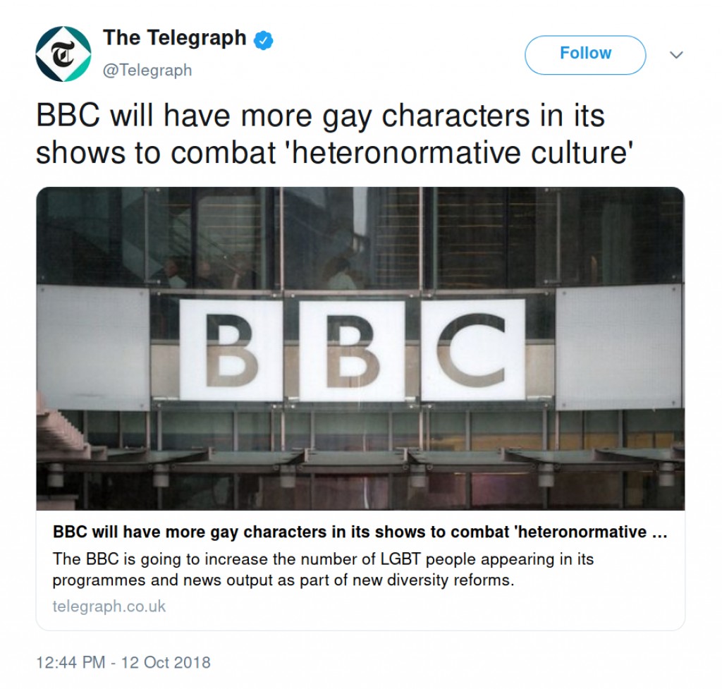 Tot BBC este ocupat să producă cât mai multe personaje homosexuale în programele lor, ca să învingă *cultură heteronormativa* .
