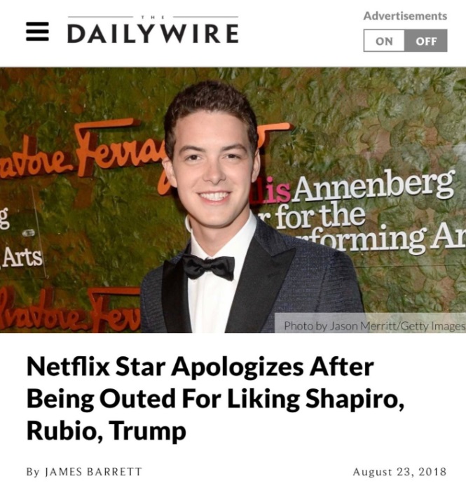 Acest actor de care eu nu am auzit a fost obligat să își ceară scuze public pentru că îi place de Ben Shapiro, de Rubios și de Trump. La Hollywood nu ai voie să ai gânduri proprii, trebuie să susții stânga și marxismul.