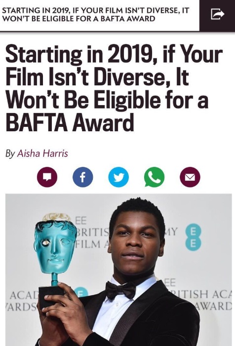 Premiile BAFTA s-au jidanizat și ele total, așa că începând din anul 2019 nu vor mai primii în competiție filme care nu sunt diverse, adică filme care nu au cât mai puțini albi în ele și cât mai mulți colorați… Dacă ești un regizor dintr-o țară cu populație majoritară albă … ești obligat cum-necum să diversifici nuanțele pielii, etniile, etc.