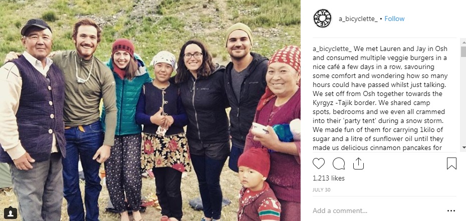Pe instagram apar ca fiind încă în Tadjikistan… pentru că acolo au fost omorâți într-un atac ISIS împreună cu alți doi cicliști, din Elveția și Olanda.