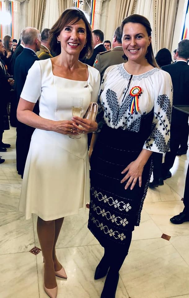 Carmen Georgeta Iohannis și Hildegard Brandl. Getuța și Hilduța, două specialiste în retrocedări imobiliare frauduloase. Hildegard Brandl, care vorbește o limbă română stricată, spurcă cu falsul ei patriotism portul popular românesc.