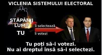 După ce m-am convins că în 2014 rezultatul alegerilor prezidențiale a fost trucat și Iohannis a fost numit președinte de forțe oculte, fără să câștige la vot, m-am jurat că nu mai votez în viața mea și o să mă țin de cuvânt. Atunci blatul a fost acceptat de Ponta sub presiunea masei de manevră scoasă în stradă la București și Cluj, unde era deja pregătit Referendumul pentru „independența” Transilvaniei dacă nu ieșea Iohannis președinte. Șantajat cu războiul civil și dezmembrarea României, pe de o parte și momit cu promisiunea că va ramâne premier, pe cealaltă parte, Ponta a acceptat numirea sasului ca președinte. Astfel, după semnarea pactului cu diavolul, Ponta a apărut pe ecranul televizorului, la ora 21:30, ca să-și anunțe „înfrângerea”, deși cei de la BEC nici nu începuseră numărătoare voturilor. Politica „biciului și a zăhărelului” inventată de Adolf Hitler a dat roade din nou!