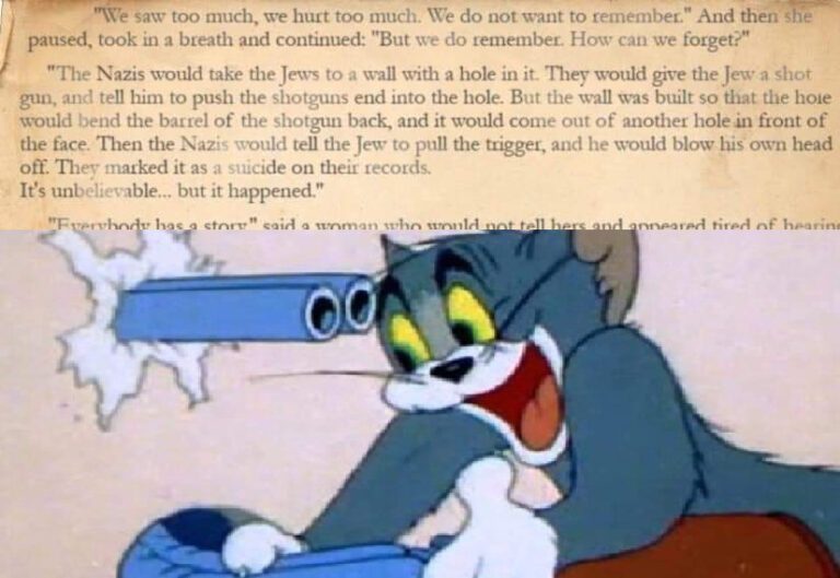 Răspunsul care îi doare cel mai mult pe jidovi la întrebările despre holocaust este “nu-mi pasă” și “nu mă interesează”. Îi doare chiar mai mult decât dacă spui că nu s-a întâmplat și dai argumente istorice. Cel mai eficient mod de a sabota această oră inutilă este să o transformi într-o oră de bășcălie, de troll, o oră în care se spun glume și colegii se amuză împreună cu tine, iar la finalul ei în loc să rămâneți cu imaginea lacrimogenă a unei Anna Frank de sub vreun pod, rămâneți cu amintirile plăcute a glumelor și bășcăliei făcute.