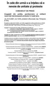 Începând cu dată de 23.12.2021, ora 12:00, angajații din poliție penitenciare și militari rezerviști declanșează proteste în toată țară. Protestele se vor desfășura la Guvernul Romániei (București – Piață Victoriei) și la prefecturile județelor lași, Timiș și Cluj.