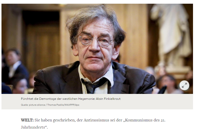 ALAIN FINKIELKRAUT, cunoscut filosof jidov, trăitor la Paris, anunță că foarte cunoscuta și criminala ideologie comunistă continuă încă sub numele de ANTI-RASISM.