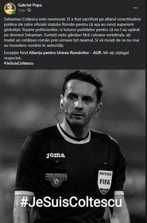 Arbitrul Coltescu sacrificat pe altarul corectitudinii politice. #JeSuisColtescu