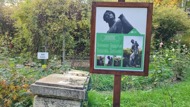Dar ce-o fi cu statuile? M-am intrebat. N-a ţinut mult întrebarea, că pe locul lor erau plăcuţe. Titlul plăcuţelor zicea: „aici a fost cândva statuia…” şi continua cu un fel de povestioară cu aer indiferent: „între 1935 şi 2020 Grădina Botanică a găzduit aceste statui”. Oau. Cândva. Cândva 85 de ani din ultimii 87 au fost aici…