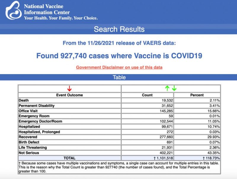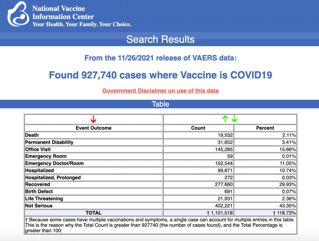 CDC a publicat noi date care arată că un total de 927.740 de raportări de reacții adverse în urma vaccinurilor COVID au fost trimise între 14 decembrie 2020 și 26 noiembrie 2021 la Sistemul de raportare a evenimentelor adverse la vaccinuri (VAERS) din SUA, inclusiv o fetiță de 5 ani, care a decedat după 4 zile de la inoculare cu serul anticovid, potrivit The Defender, publicația organizației de apărare a copilului înființată de celebrul Robert F. Kennedy.