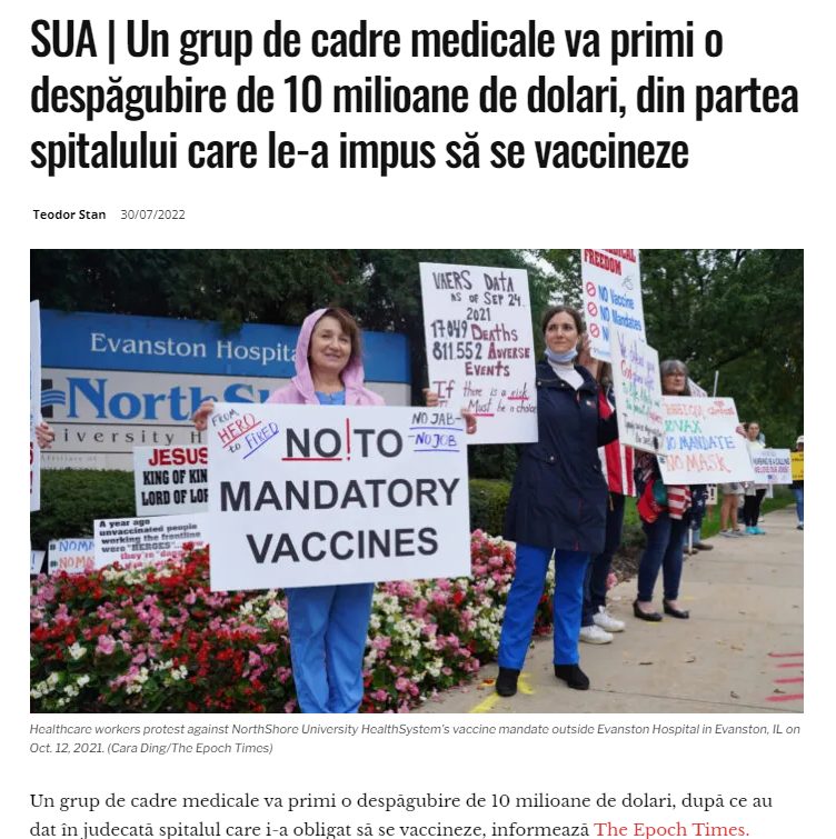 Autoritățile care au dat amenzi pentru nepurtatul botniței precum și angajatorii care i-au constrâns pe angajați să se vaccineze obligați de justiție să plătească despăgubiri