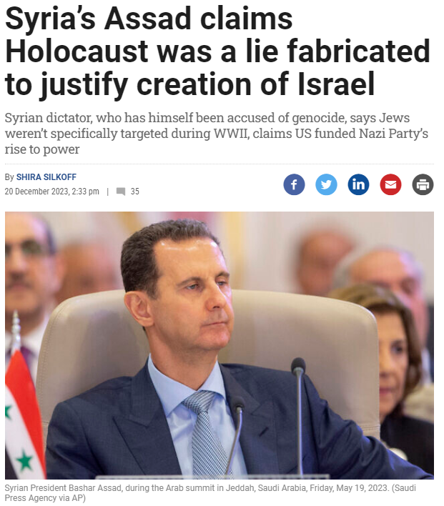 Bashar Al-Assad afirmă că nu există nicio dovadă că șase milioane de jidani au fost uciși în “holocaust”. 🇸🇾 👏