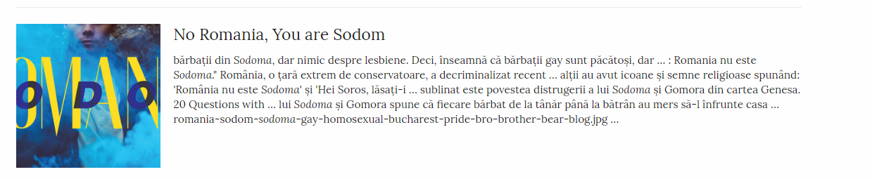 Un blog mincinos, antiromân și anticreștin cu articole în limba engleză ne denigreaza Țara și Credința într-un articol intitulat “România este Sodoma!”.