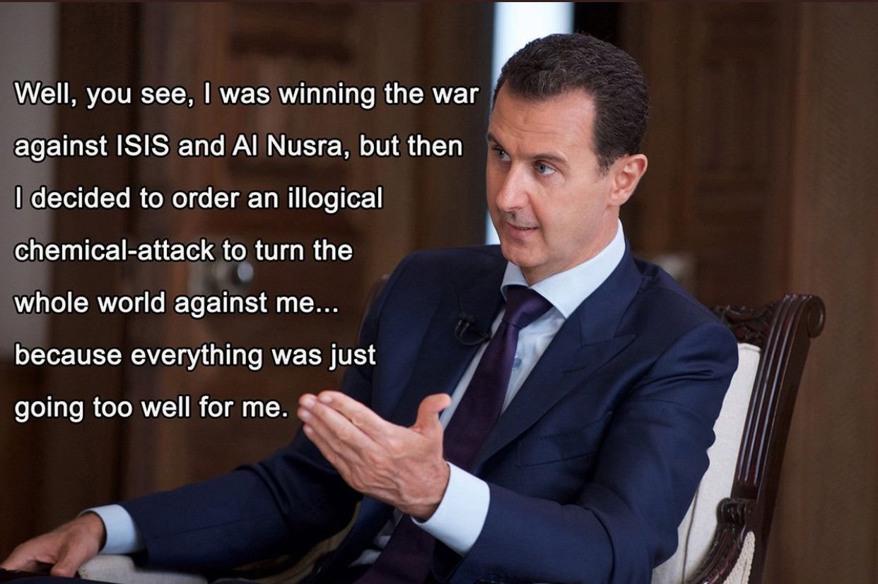 Spre deosebire de racheta lansată împotriva Siriei anul trecut (ca urmare a altui atac chimic dubios și hiper-mediatizat), anul acesta actiunea face parte dintr-un plan mai larg al coaliției SUA, UK și Franța de a bombarda teritoriile lui Assad, ca presupuse reacții la un așa zis atac chimic asupra populației inocente Siriene.