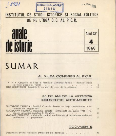 În revistă nu se precizează autorul. Revista INSTITUTULUI DE STUDII ISTORICE Şl SOCIAL-POLITICE DE PE LINGĂ C. C. AL P.C.R. era supravegheată de activiști aproape toți de sorginte kominternistă, adunați într-un comitet de redacție încă demn de încrederea partidului : GEORGESCD TITU — redactor-şef, ARDELEANU ION, BARBULESCU CONSTANTIN — redactor-şef adjunct, MÂCIU VASILE, MATEI GHEORGHE, MUNTEANU N. G., NICHITA PARASCHIVA, PETRIC ARON, PETRIŞOR VASILE — secretar de redacţie, ROMAN VALTER, VOICU ŞTEFAN, ZAHARIA GHEORGHE.