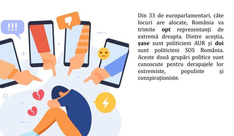 Curios este faptul că raportul menționează că din 33 de europarlamentari, câți are România, opt reprezentanți ar fi de extremă dreaptă. Șase de la AUR și doi de la SOS. Grupări cunoscute “pentru derapajele lor extremiste, populiste si conspiraționiste”. Același limbaj vag și interpretabil fără exemple concrete. Pentru acești oameni orice nu este de extremă stânga este automat “de extremă dreapta”.