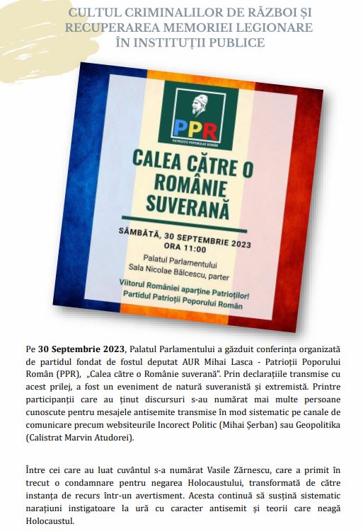 “Cultul criminalilor de război și recuperarea memoriei legionare în instituții publice”