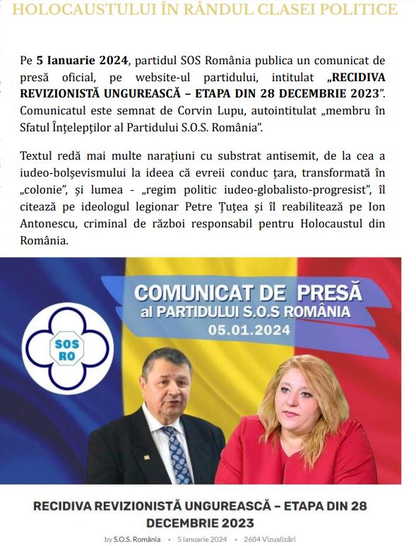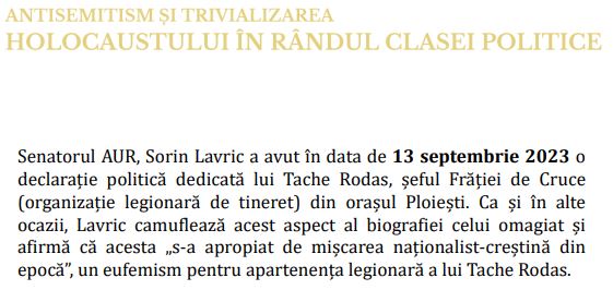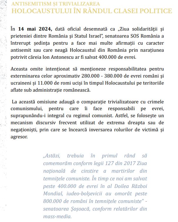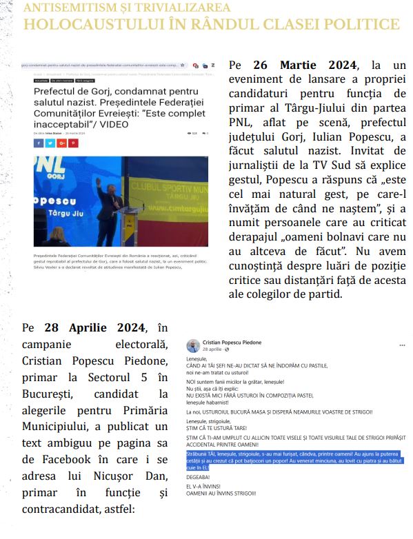 Urmează capitolul antisemitism si trivializarea holocaustului în randul clasei politice