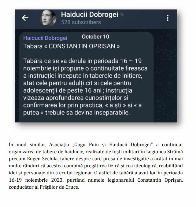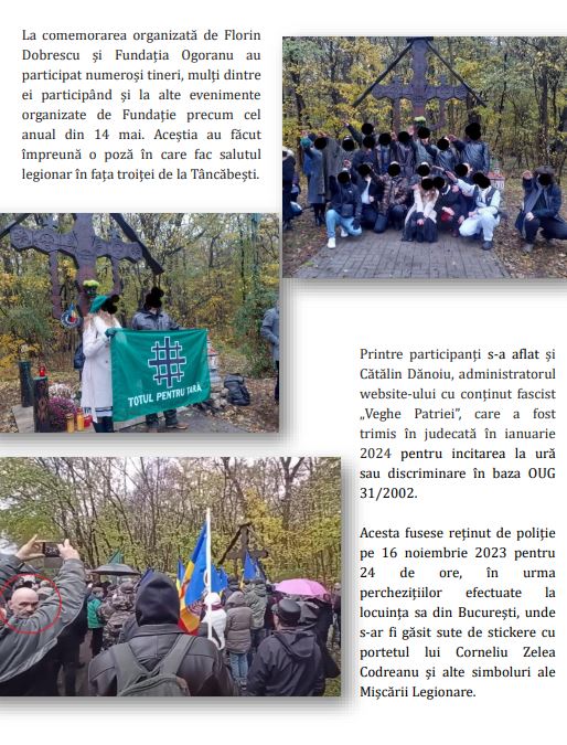 Raportul se leagă de simbolurile afișate în transmisiunile sale, ca tricoul cu sigla mișcării 41 pentru România, portretul Căpitanului și crucea de fier pe care motociclistul oltean o poartă la gât.