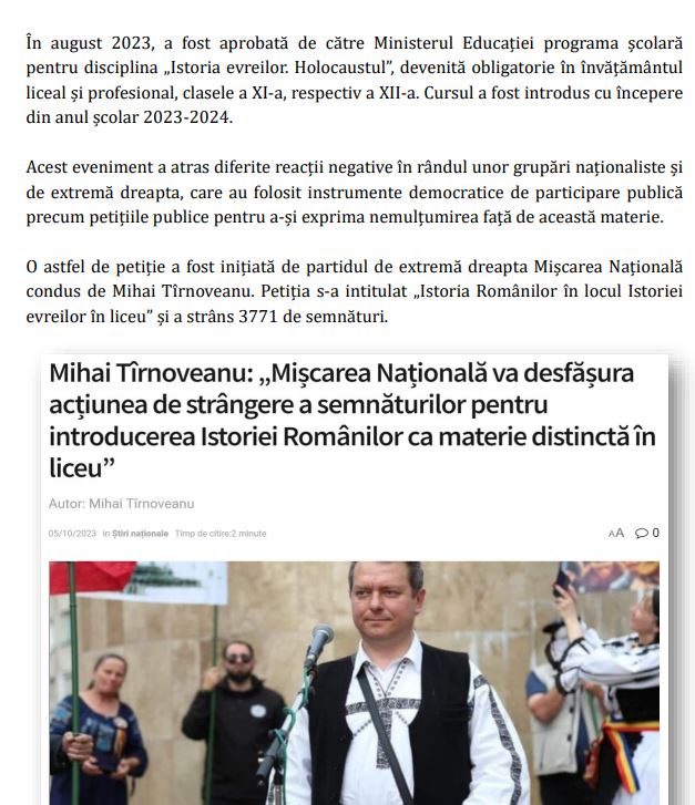Nu știu ce înțelegeți dvs. prin formularea „the academic and journalist Adina Marincea”. Adina Marincea nu este nici academician, nici jurnalist, ci doar o angajată a I.N.S.H.-„E.W.”, plătită să confecționeze, la comandă, asemenea compilații, ca aici: https://www.libertatea.ro/opinii/cand-vom-ajunge-la-putere-promisiunea-. Adică este o mercenară de presă. Ca, de altfel, toți angajați de la așa-zisul „institut național de studiere a holocaustului din România – „Elie Wiesel“.