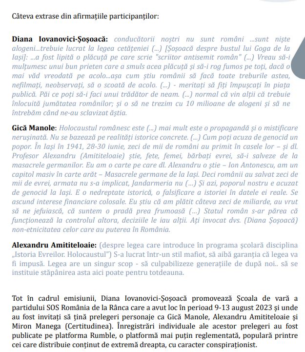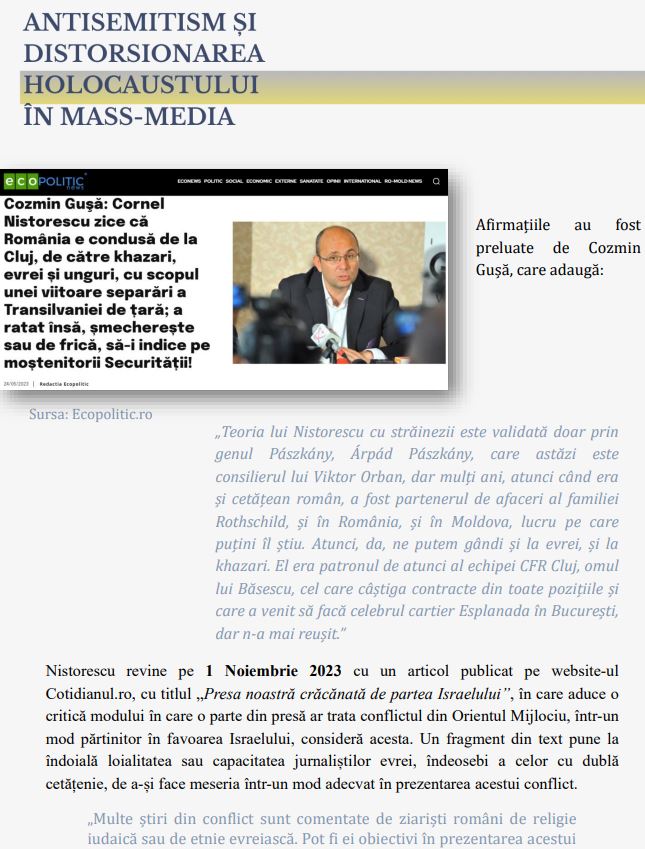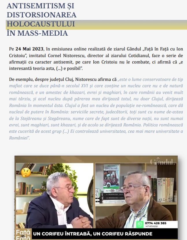 CAMPIONII ROMÂNISMULUI și Analiza Raportului Anual de Monitorizare a Antisemitismului