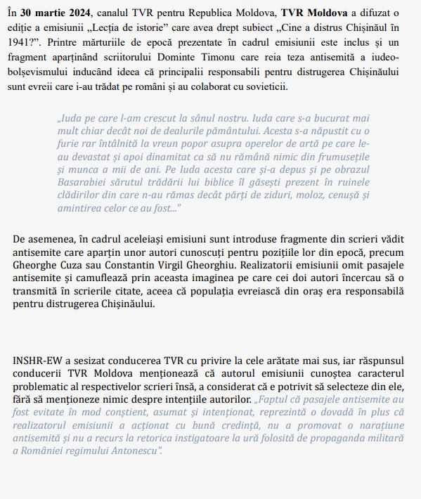 INSHREW a fost creat “ca să studieze holocaustul” în România, nu să monitorizeze antisemitism online, nu să facă plângeri penale, nu să dea telefoane la primării și să amenințe în stil mafiot.