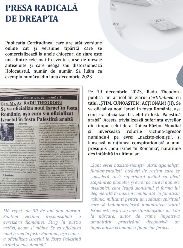 Ziarul Certitudinea este cea mai naționalistă publicație tipărită și asta generează frustrarea institutului, care îi face o reclamă prețioasă în următoarea pagină din raport: