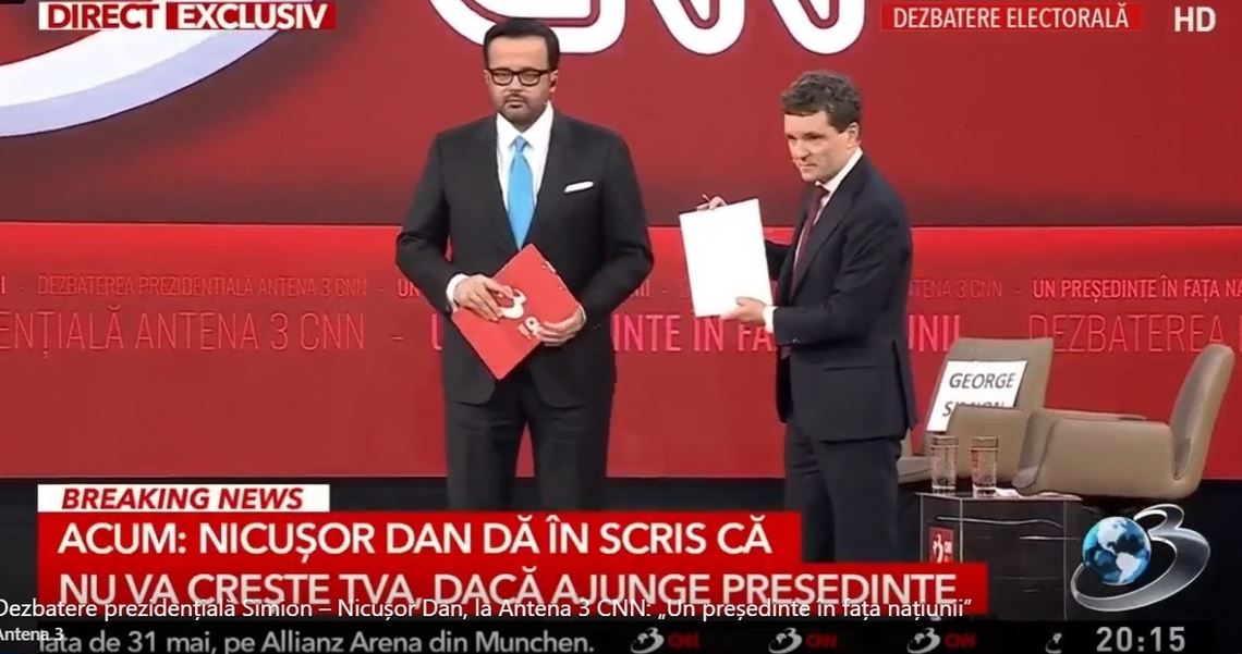 Se pare că nu s-a ținut de promisiune Nicușor Dan atunci când a semnat pe o foaie în studioul Antena 3 că nu va crește TVA-ul. Sunt chiar șocat, cine ar fi crezut că Nicușor Dan nu se va ține de cuvânt?