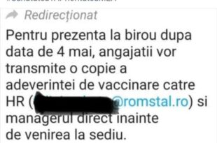 Read More »Condiționarea continuă! ROMSTAL cere angajaților adeverință de vaccinare