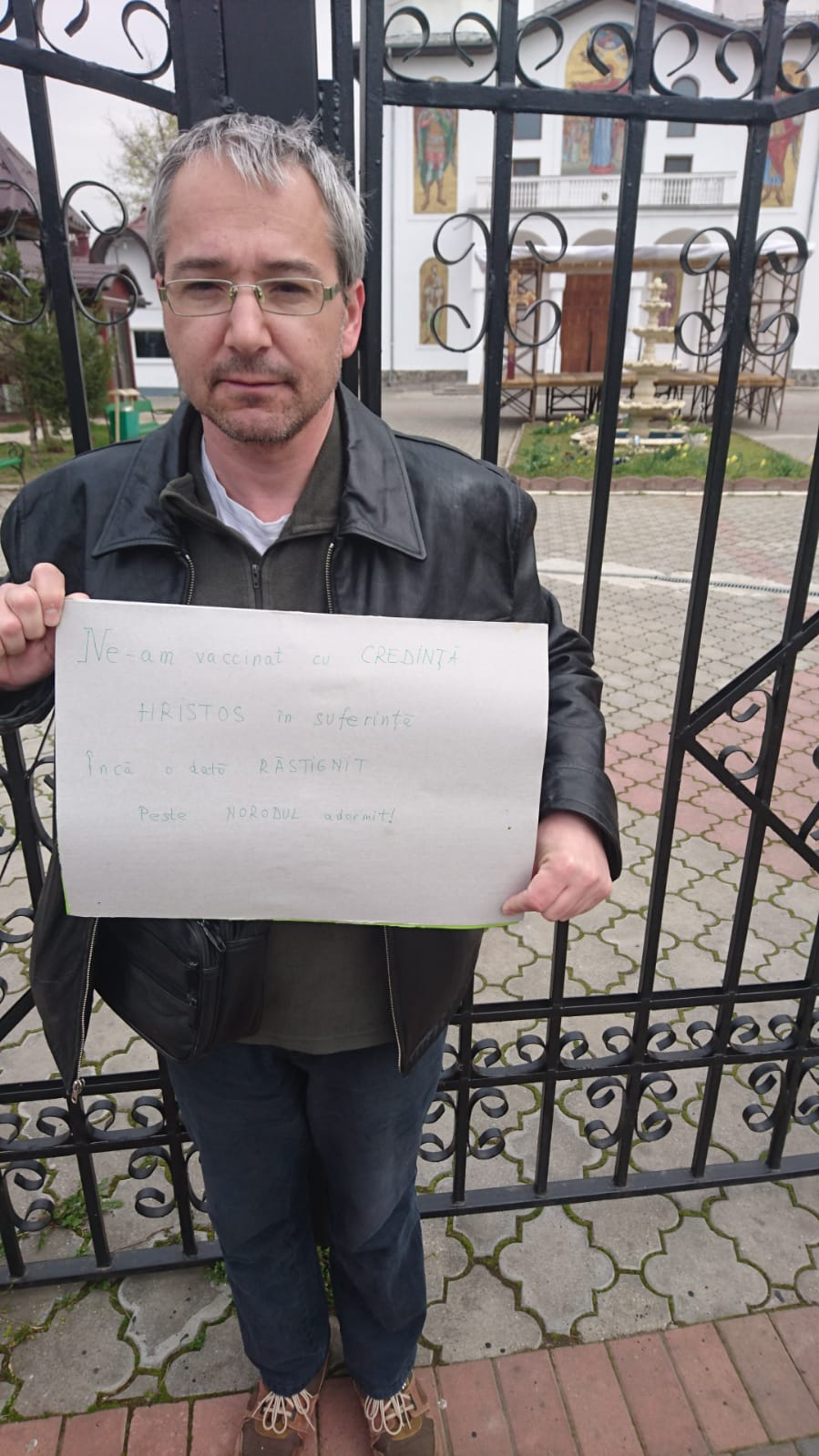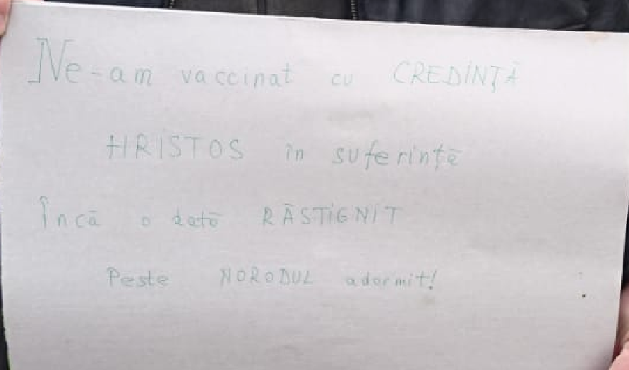 Mesajul acestora este “Ne-am vaccinat cu CREDINȚĂ. HRISTOS în suferință încă o dată RĂSTIGNIT peste NORODUL adormit!”
