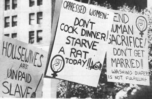 În 1963, Betty Friedan (o marxistă ascunsă și jidancă) a publicat *Misticul feminin*, care avea ca idee de bază existența insuportabilă cauzată de statutul de casnică, întreaga carte bazându-se pe interviuri fictive (nu au putut fi găsite niciodată femeile intervievate) cu femei dar și pe niște date absurde dintr-un studiu a lui Alfred Kinse, *Comportamentul sexual al femeii* în care se afirmă că în anii ’50, femeile aveau deja relații extraconjugale și avorturi. Friedan a afirmat că în toate interviurile pe care le-a condus, nu a întâlnit nici o casnică fericită cu viață ei.