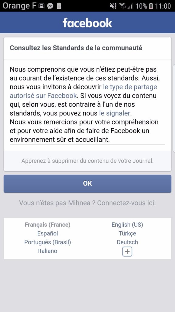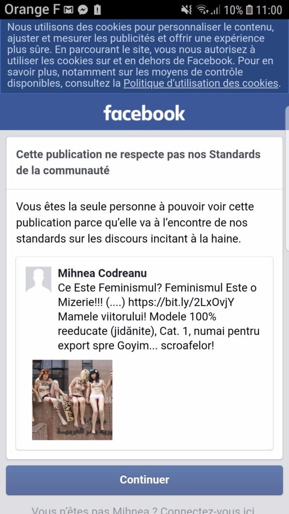 Când articolul a fost urcat pe facebook, a urmat suprimarea sa: