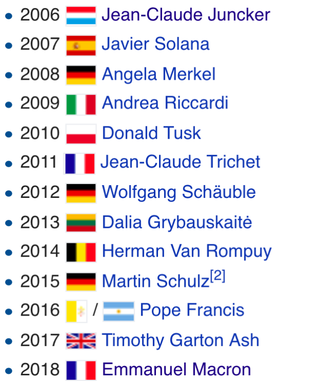 În fiecare an, Uniunea Europeană acordă un premiul în onoarea lui Kalergi, iar Angela Merkel a primit acest premiu.