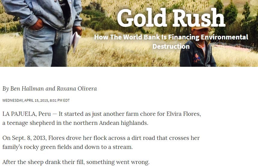 Cum a finanțat Banca Mondială extragerea aurului cu cianuri în Peru, și dezastrul pe care l-au lăsat în urmă.