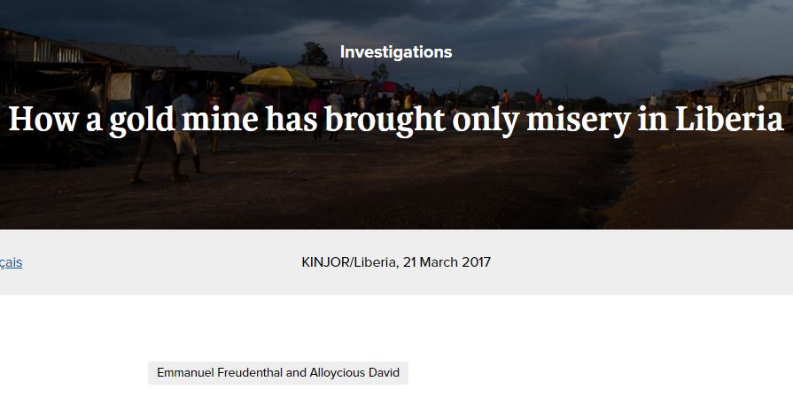 “Însă Banca și IFC se pare că nu au tras New Liberty Gold la răspundere pentru că nu și-au îndeplinit obligațiile minime, deși IFC au afirmat pe website-ul lor că va ajuta compania să implementeze “cele mai bune standarde” în Kinjor.”